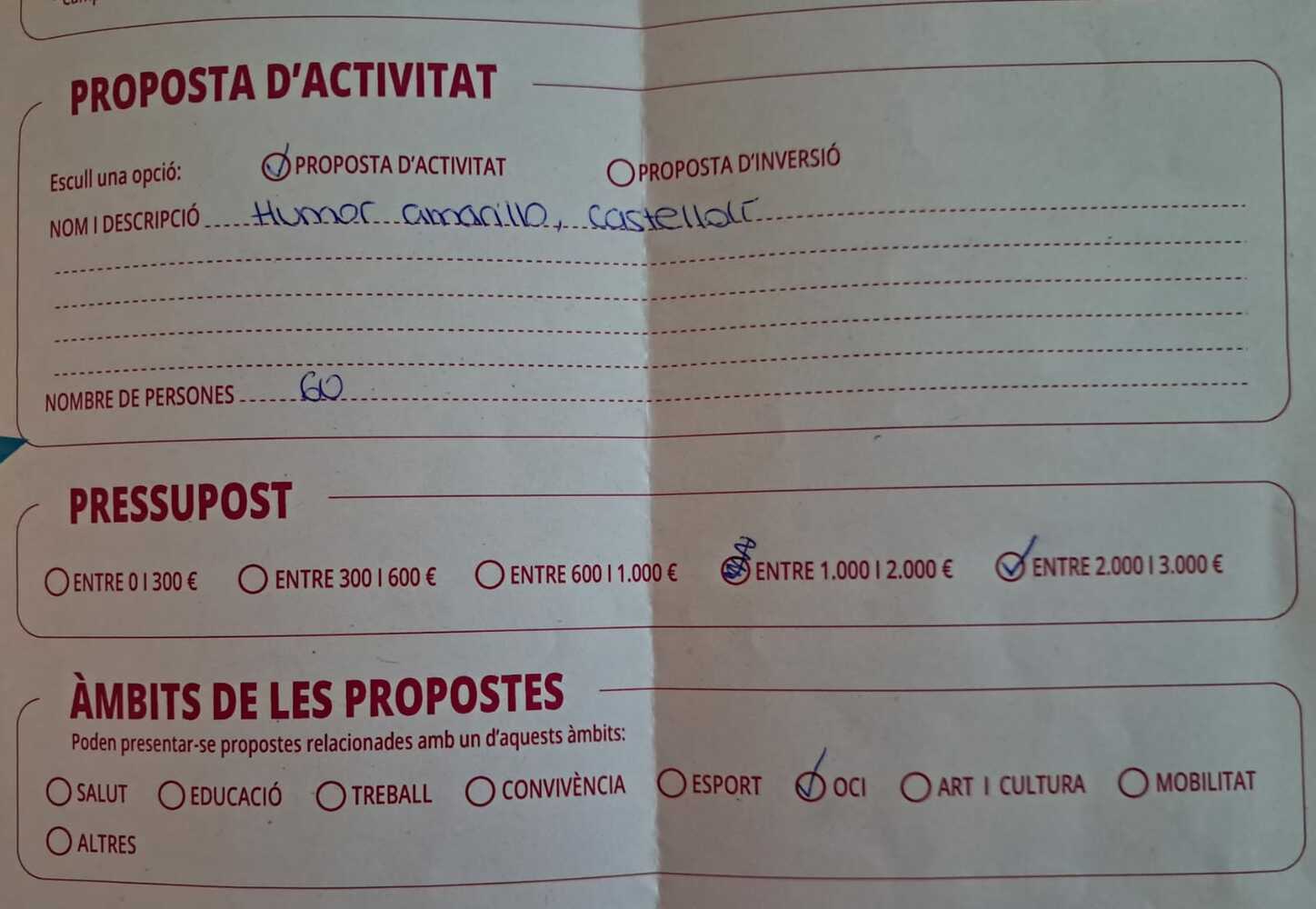 Humor amarillo, Castellolí (Proposta recollida en butlleta de paper)