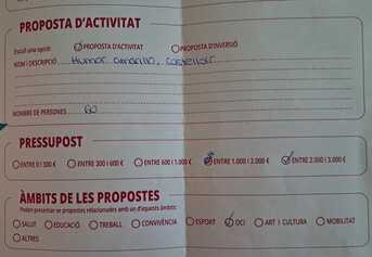 Pressupost de la teva proposta: (entre 0 i 300€ / entre 300 i 600€ / entre 600 i 1.000€ / entre 1.000 i 2.000€ / ente 2.000 i 3.000€) ente 2.000 i 3.000€
