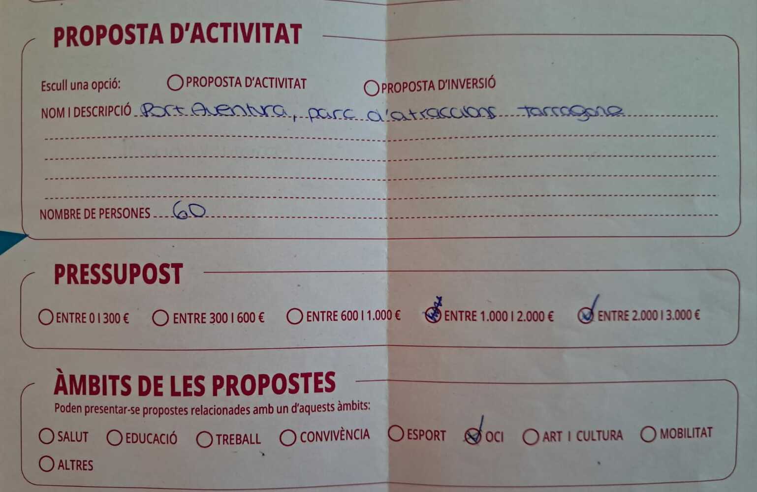 Descripció de la teva proposta:Port Aventura, Parc d'atraccions Tarragona. Per 60 persones.