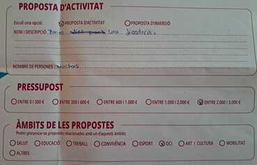 Pressupost de la teva proposta: (entre 0 i 300€ / entre 300 i 600€ / entre 600 i 1.000€ / entre 1.000 i 2.000€ / entre 2.000 i 3.000€) entre 2.000€ y 3.000€